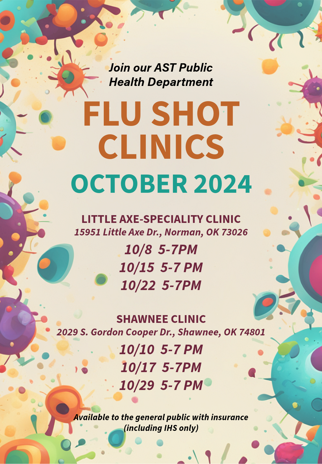 To help protect our community, we will be providing flu shots at our Little Axe Specialty Clinic (inside our Little Axe Health Center) and at the Shawnee Clinic all throughout this October!