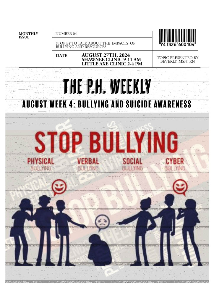 Public Health Discussion- Bullying & Suicide Awareness, presented by Beverly Felton, MSN, RN