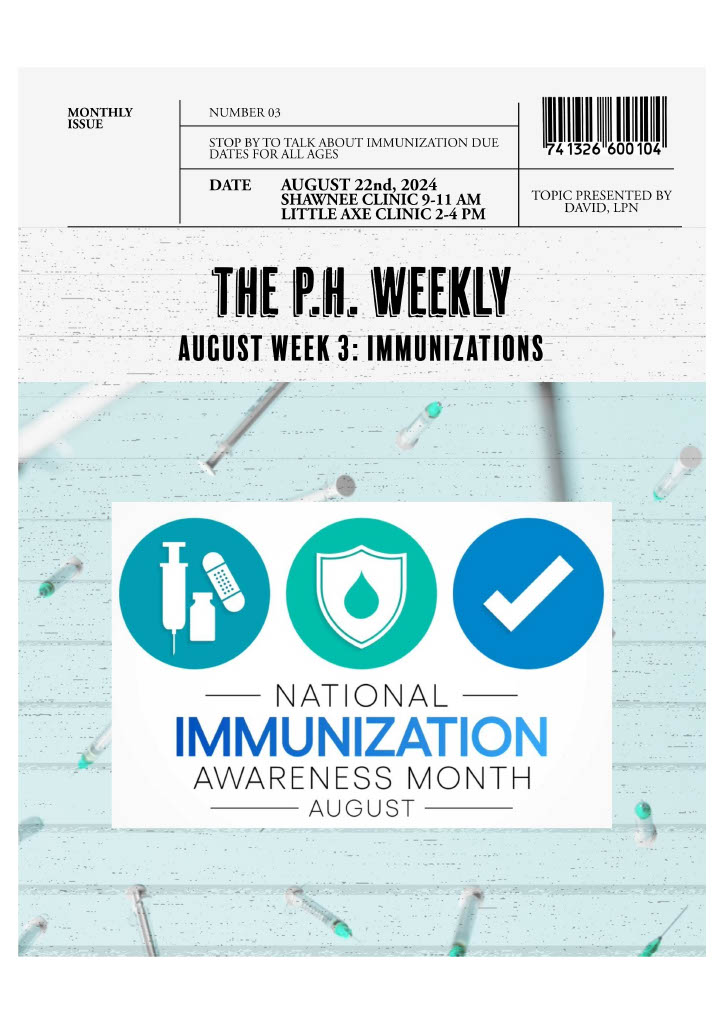 Our next public health talk will discuss immunizations, which will be presented by our LPN, David!