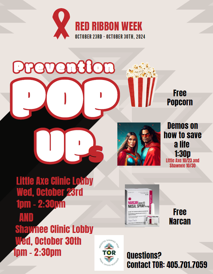 Join us for our Prevention Pop Ups at the Little Axe and Shawnee Clinic lobbies!