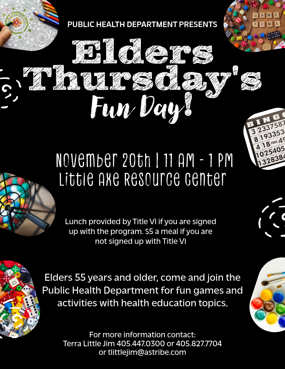 The Public Health Department is excited to invite all elders (55 years and older) for an afternoon of fun games, activities, and health education topics.